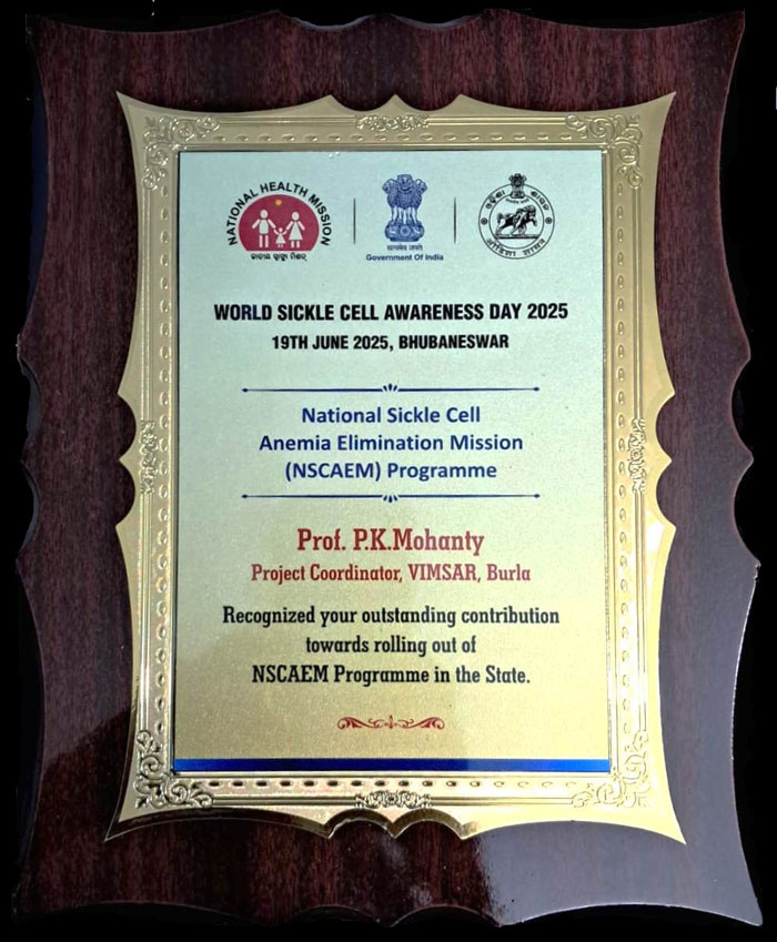 Prof. P.K.Mohanty, Project Coordinator, VIMSAR, Burla Recognized our outstanding contribution towards rolling out of NSCAEM Programme in the state